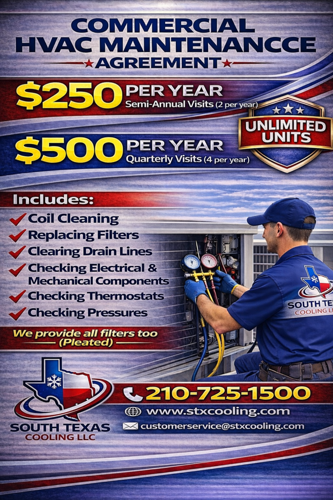 South Texas Cooling LLC provides dependable commercial HVAC solutions designed to keep your business comfortable, efficient, and running smoothly. Our experienced technicians work with systems of all sizes, delivering reliable service from installation to long-term maintenance.